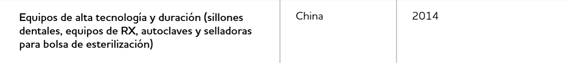 Equipos de alta tecnología y duración (sillones dentales, equipos de RX, autoclaves y selladoras para bolsa de esterilización)