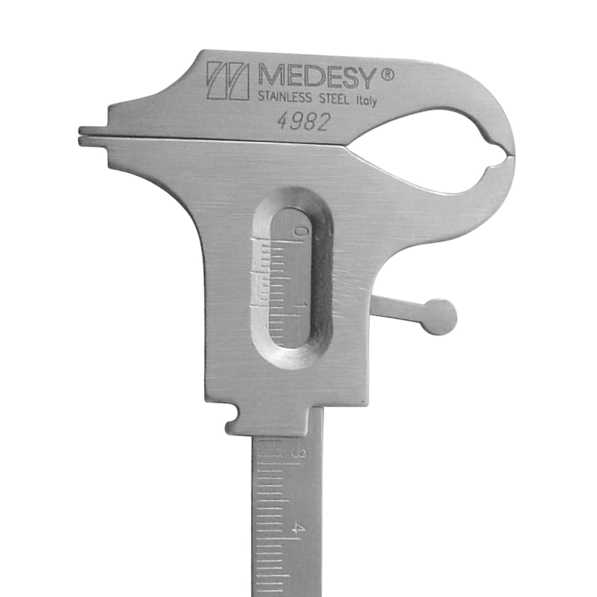 Se usa principalmente en odontología y laboratorios dentales para medir con precisión las dimensiones de dientes y modelos, determinando su longitud, ancho, grosor y la distancia entre ellos. Su diseño con puntas agudas y la escala milimétrica facilitan la medición de pequeños espacios, la fabricación de prótesis, el ajuste de aparatos y la toma de medidas en pacientes.