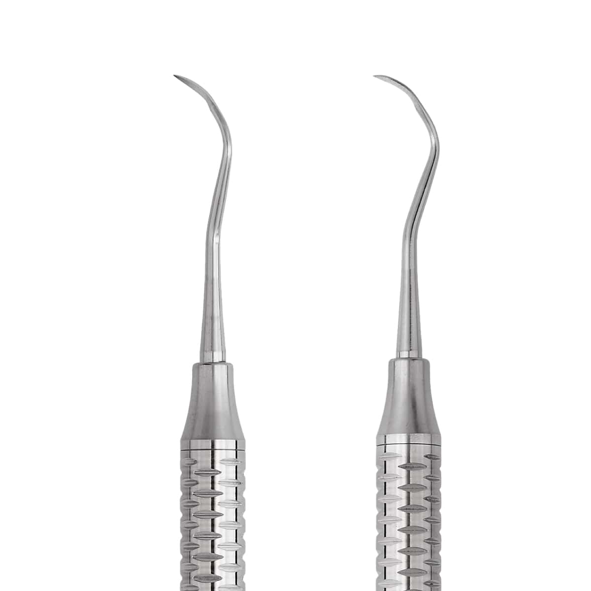 El escariador modelo McCall cuenta con dos hojas universales con afilado doble y forma elíptica con el final redondeado.