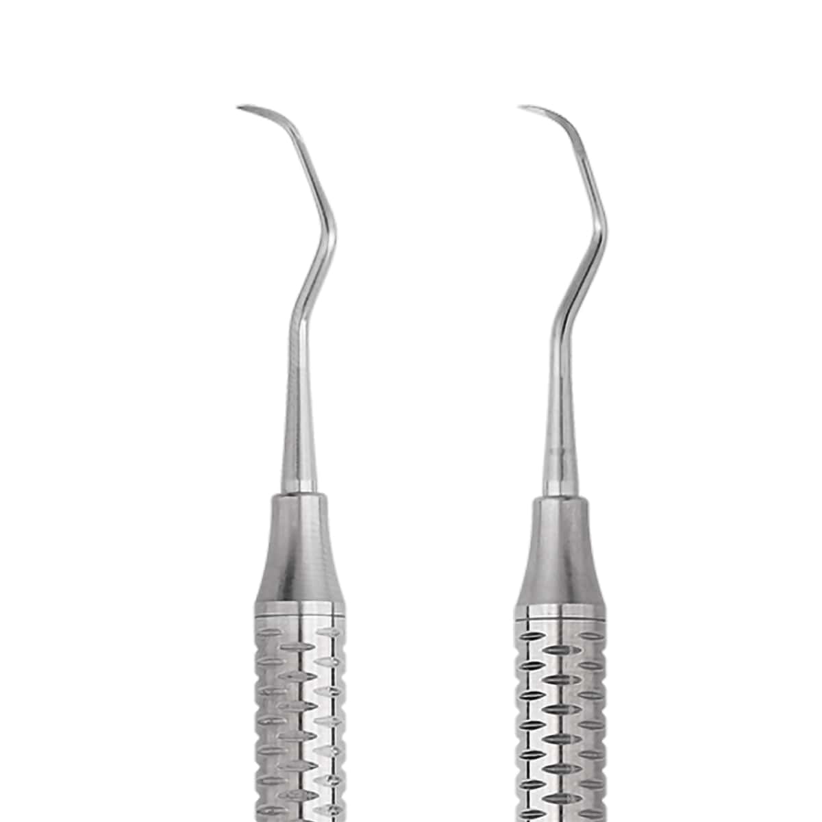 Puntas robustas y afilado perfecto a ambos lados de las mismas, eficaces para tratar las zonas posteriores de la cavidad bucal. Limpieza perfecta de la zona supragingival.