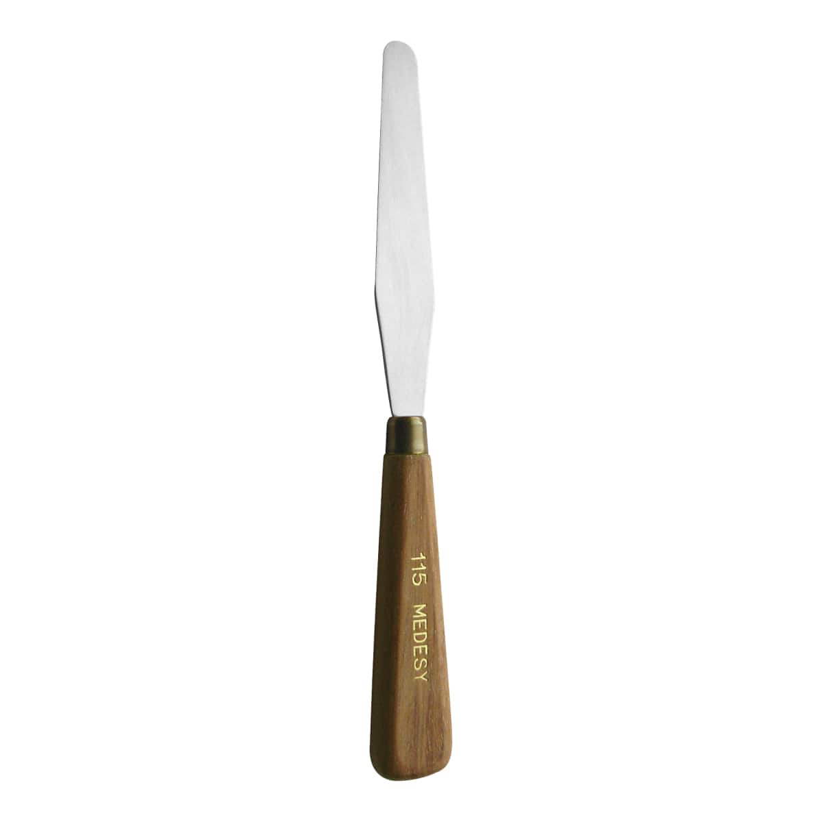 Espátula para elastómeros ligera y eficaz. Medidad de 119 mm, cuenta con un mango de madera y una hoja muy flexible y fusiforme muy adaptada para trabajar con elastómeros.