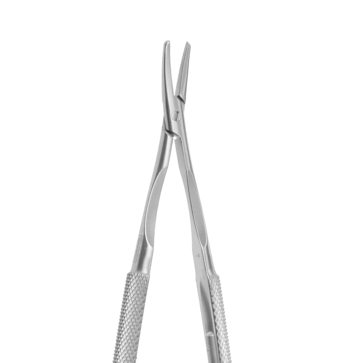 Diseñado con un reposa dedos específico que agiliza el uso y optimiza la precisión durante la intervención. El mango está soportado por un sistema con muelle interno que facilita su uso. Las pestañas de cierre colocadas en el interior en la mitad del mango son de acero inoxidable atemperado, para una mayor durabilidad, por lo que garantizan un perfecto uso incluso después de muchos usos.