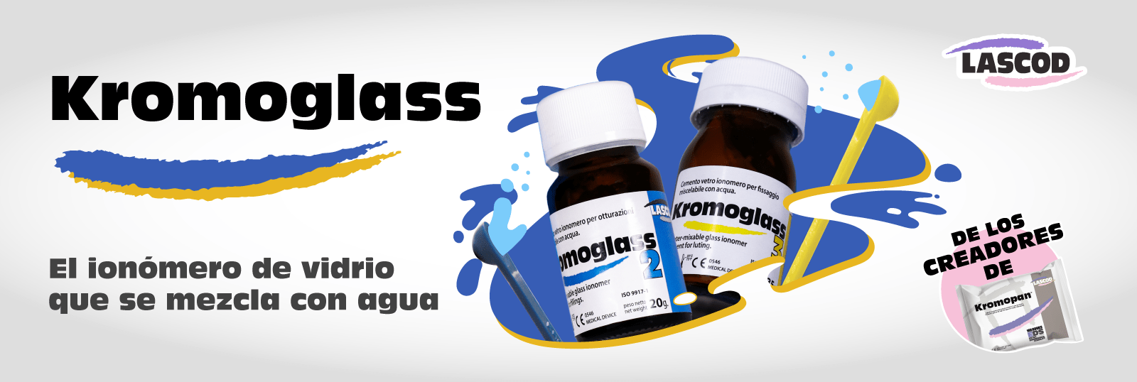 A diferencia de otros ionómeros de vidrio, Kromoglass se mezcla con agua destilada, bidestilada o tridestilada, lo que permite aprovechar al máximo el producto gracias a la fácil disponibilidad de este líquido, lo que representa un ahorro de tiempo y dinero en el consultorio.