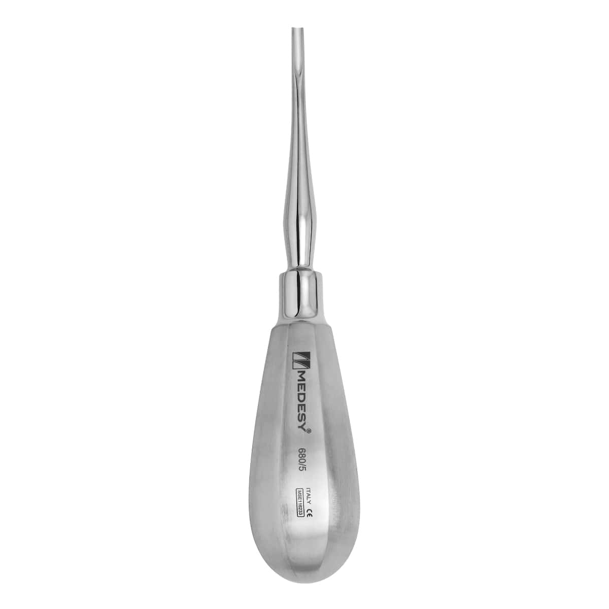 Los elevadores Bein se usan para luxar y extraer de forma simple las raícez fracturadas en la región anterior del área maxilar. Esos elevadores vienen con nuestro mango de acero inoxidable más corto y con diámetro más ancho, de 27 mm, para garantizar el mejor agarre posible durante las intervenciones en las zonas anteriores de la cavidad buccal.