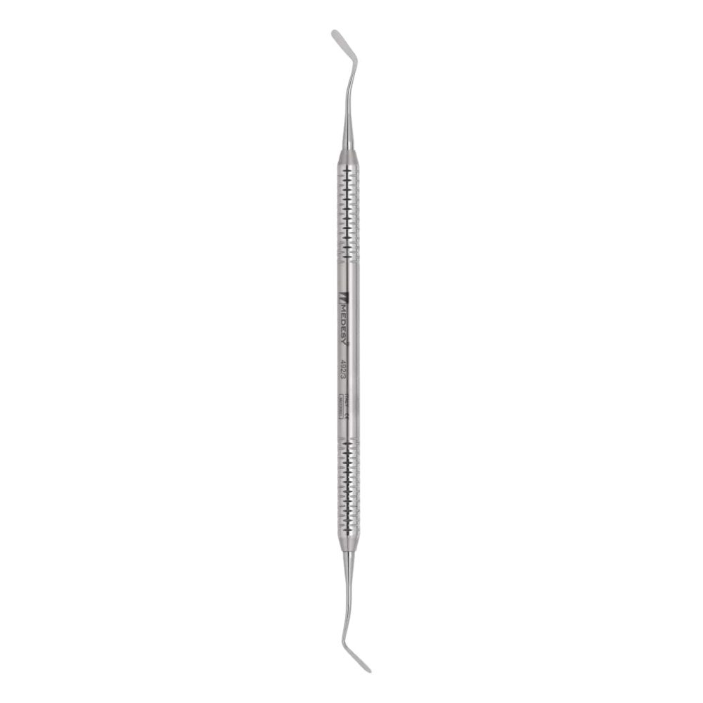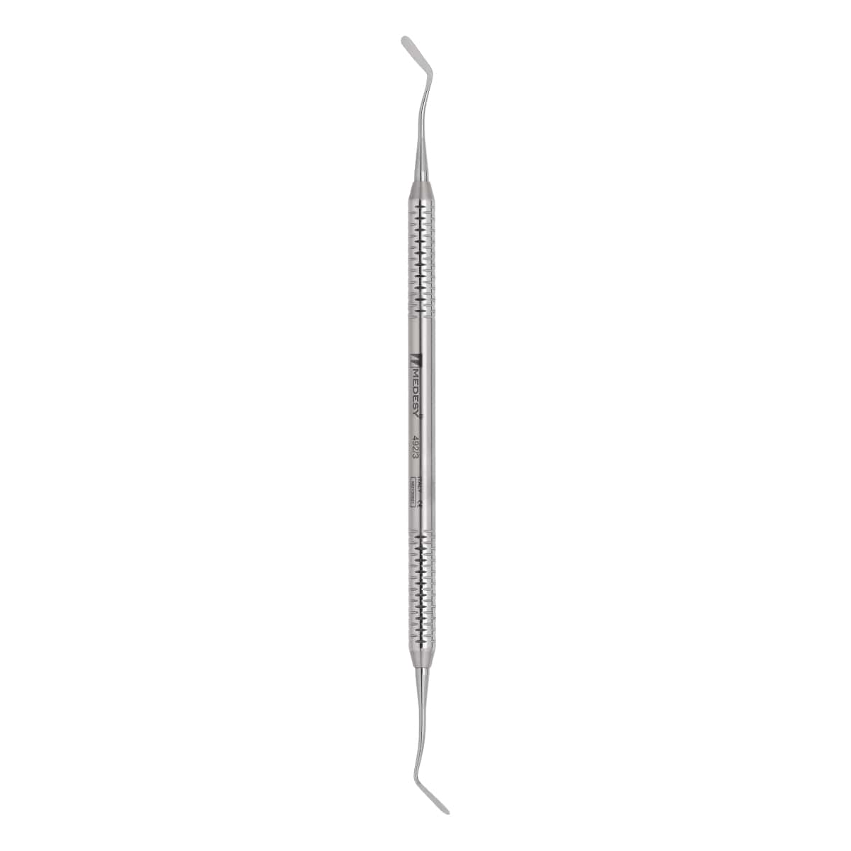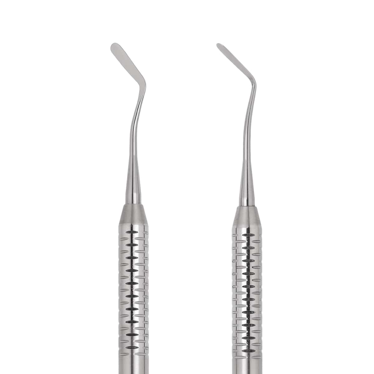 Los instrumentos para composite Goldstein se caracterizan por sus puntas finas y pequeñas. Son instrumentos con doble extremo que combinan una espátula para composite por un lado y un obturador o una miniespátula por el otro.