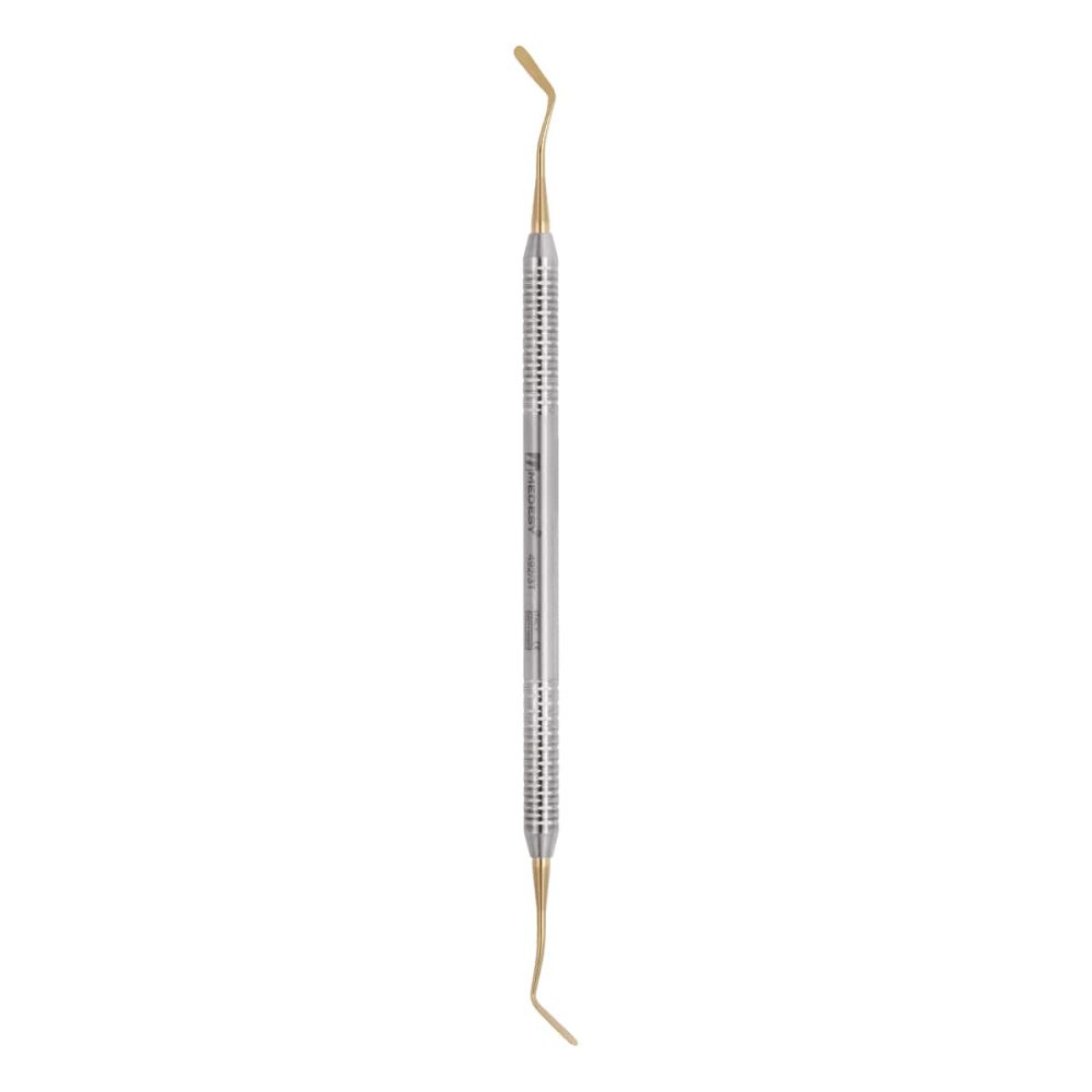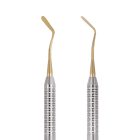 Los instrumentos para composite Goldstein se caracterizan por sus puntas finas y pequeñas. Son instrumentos con doble extremo que combinan una espátula para composite por un lado y un obturador o una miniespátula por el otro.