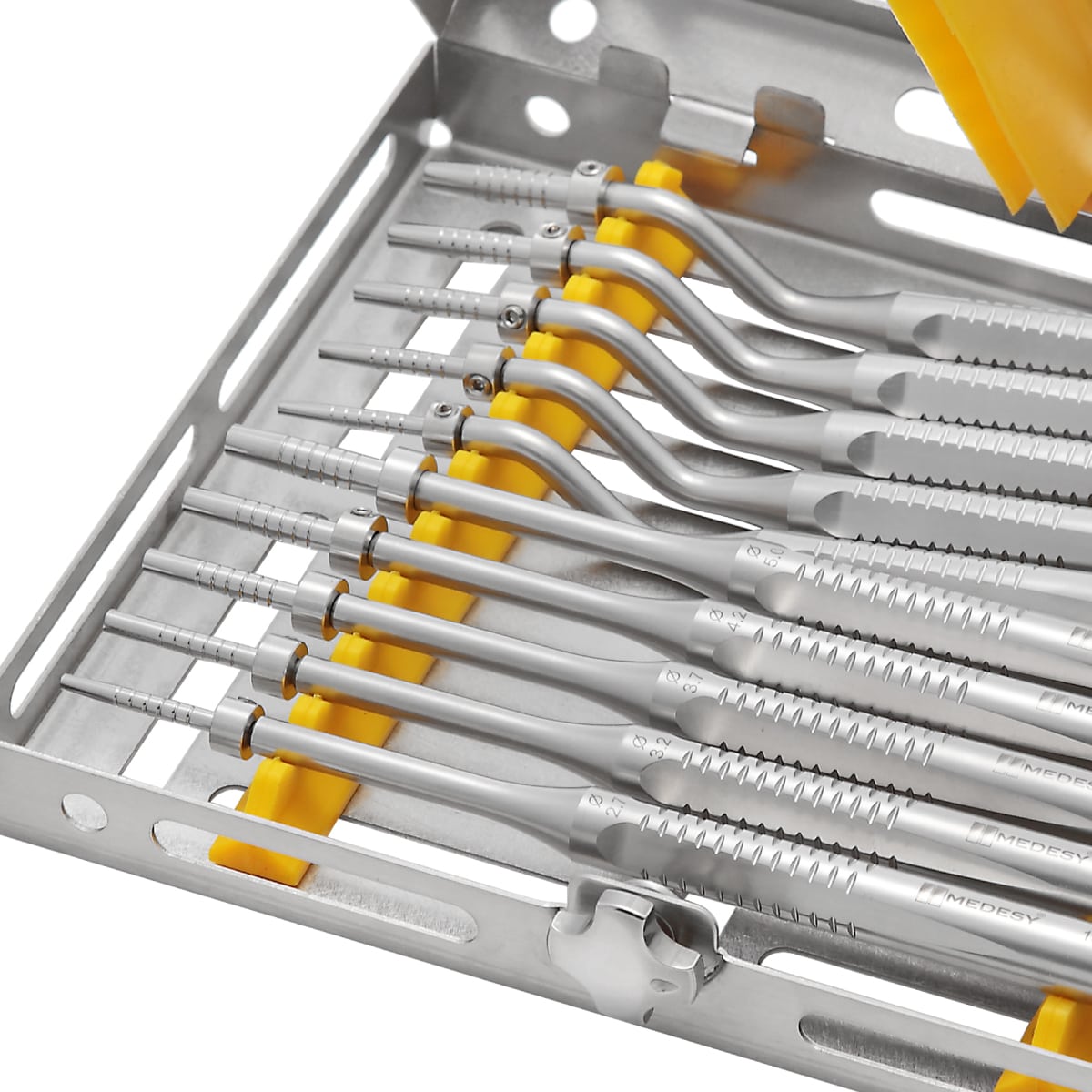 Para que te asegures de tener siempre a mano todas las medidas de osteotomo para abordar cada tipo de preparación del sitio implantario. Dispuestos ordenadamente en una de nuestras bandejas para esterilización Gammafix: organización, practicidad y eficacia garantizadas.