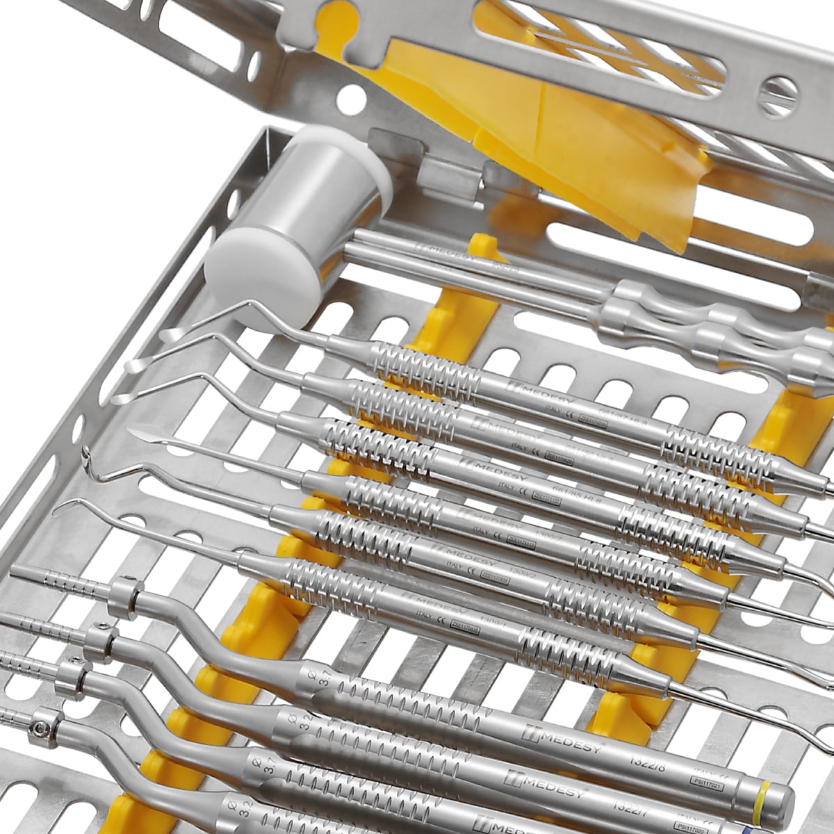 Kit completo para realizar correctamente distintas intervenciones de cirugía implantaria, tratamiento del hueso y elevación del seno maxilar.