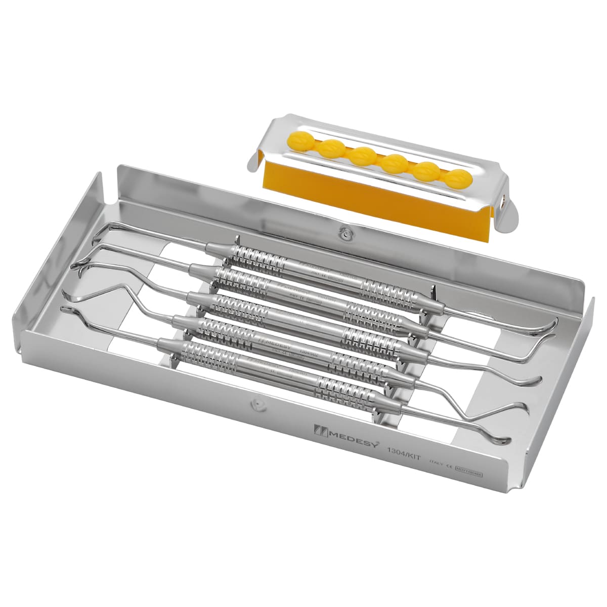 Medesy ha hecho una selección de cinco de los modelos más vendidos entre los instrumentos para la elevación del seno maxilar y ha creado kits en consecuencia. Los kits vienen en una bandeja para esterilización con cierre de silicona para tener los instrumentos organizados y que no se muevan en su interior.